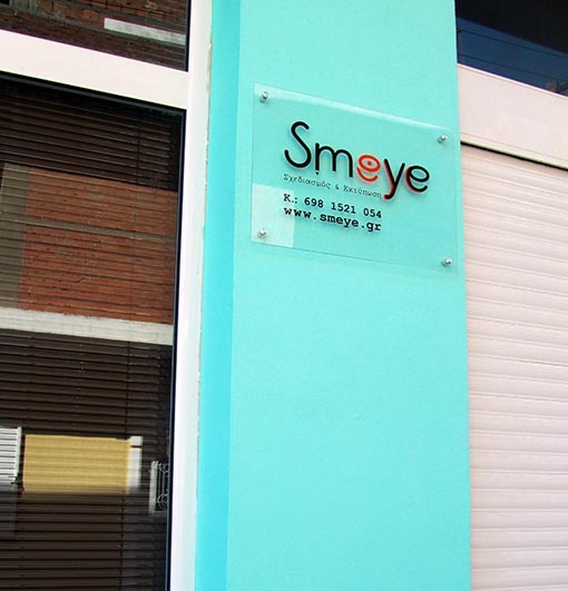 | Για την εταιρική ταυτότητα του γραφείου μας χρειαζόμασταν 1 λιτό, μοντέρνο, εύηχο & χαρούμενο λογότυπο που να δημιουργεί στον θεατή ευχάριστα συναισθήματα. Έτσι απ' την συνένωση των λέξεων Smile (χαμόγελο) & Eye (μάτι) δημιουργήσαμε μια εντελώς καινούργια λέξη το <<Smeye>> (χαμογελαστό μάτι) περιγράφοντας έτσι όλα τα συναισθήματα & τις σκέψεις που θέλουμε να διακατέχουν τον εκάστοτε θεατή αντικρίζοντας τις δουλείες μας. Σαν βασικά χρώματα χρησιμοποιήσαμε το καφέ (αξιοπιστία, σταθερότητα, μακροβιότητα, εμπιστοσύνη) & το πορτοκαλί (παιχνιδιάρικο, χαρούμενο, τραβάει την προσοχή), σαν φόντο χρησιμοποιήσαμε 1 μπλε που πρασινίζει (πνευματικότητα). |