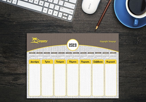 Πλάνο γραφείου, εκτυπωμένο με τα στοιχεία της επιχείρησής σας & κενό χώρο για τις καθημερινές σας σημειώσεις.
